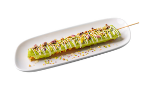 Crispy Waffel am Stiel in Pistaziensauce getaucht