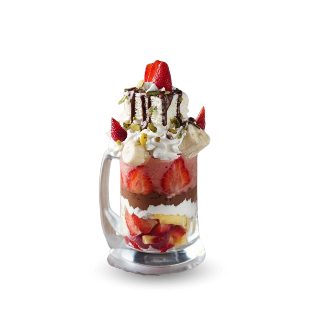Banane, Erdbeere, Ananas, Kiwi, Creme, Milch, Nüsse and Schokolade