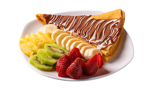 Crêpe überzogen mit reiner belgischer Schokolade, serviert mit Früchten