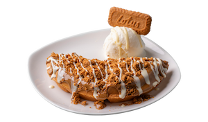 Waffel serviert mit weißer Schokolade und Lotusbröseln mit Eiscreme